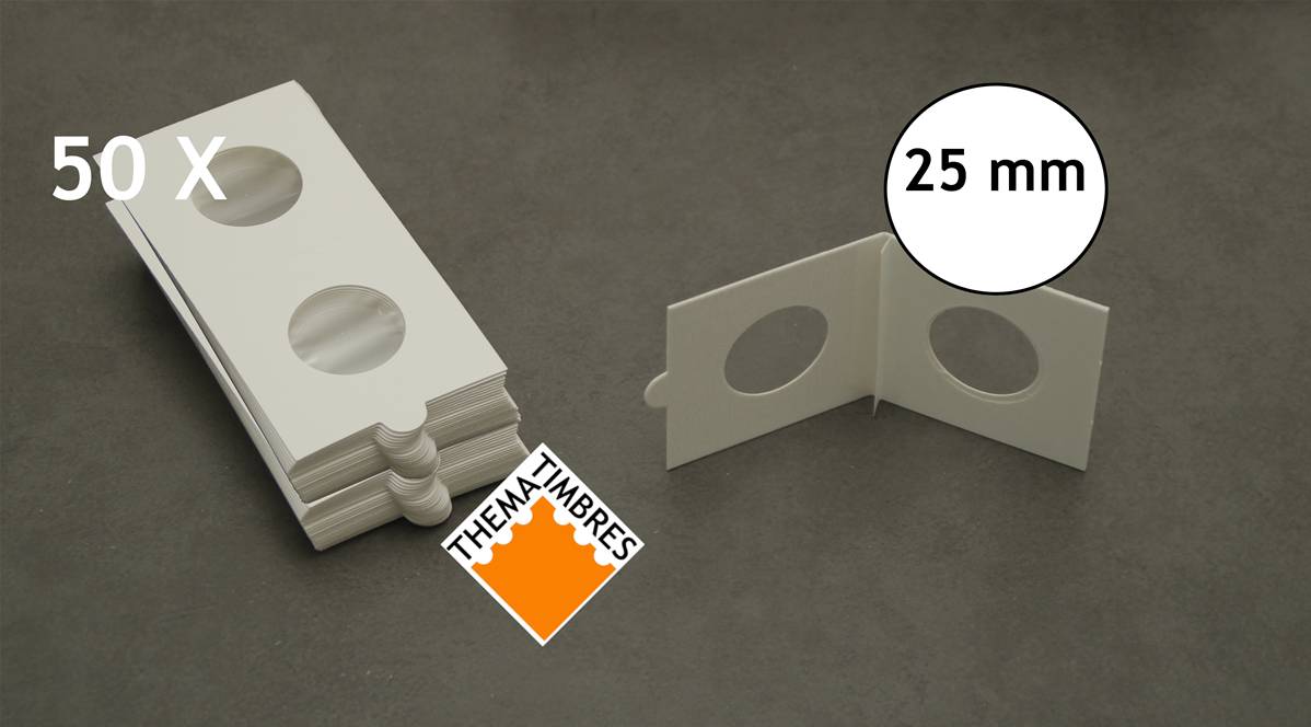 lot de 50 étuis numismatiques carton HB autocollants 25 mm pour pièces Hartberger 50025TH