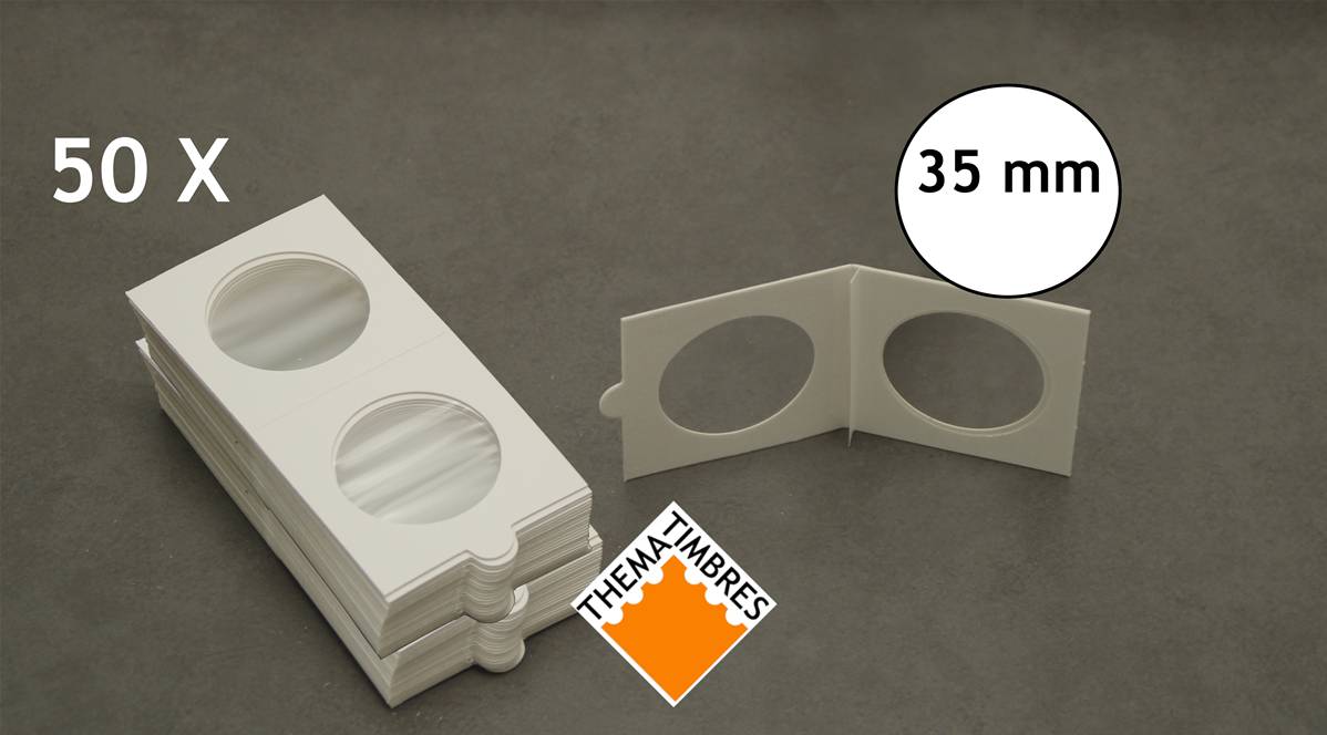 lot de 50 étuis numismatiques carton HB autocollants 35 mm pour pièces Hartberger 50035TH