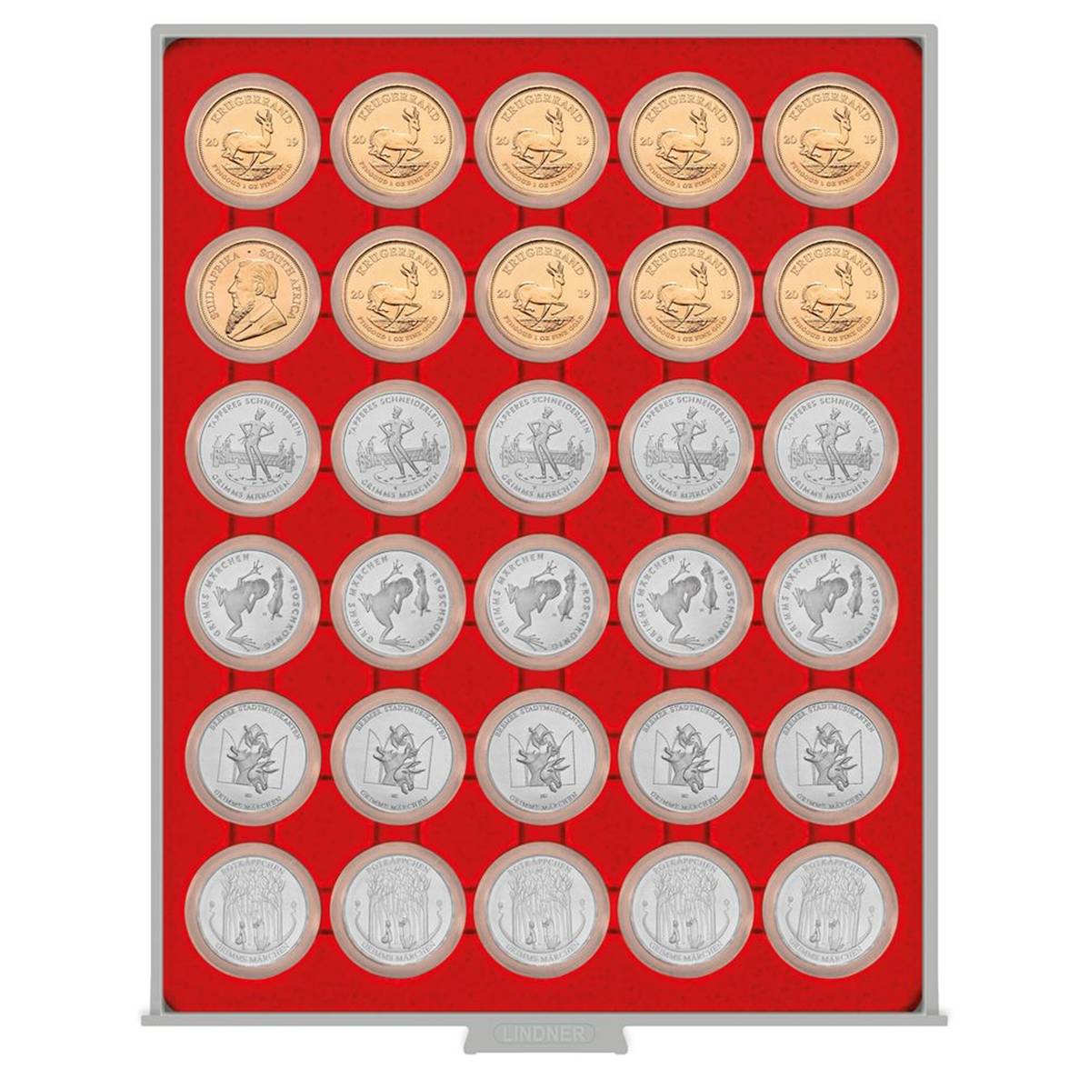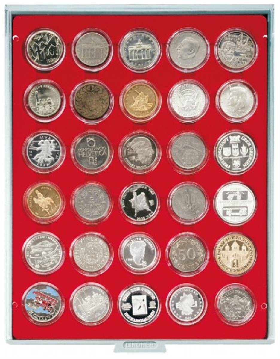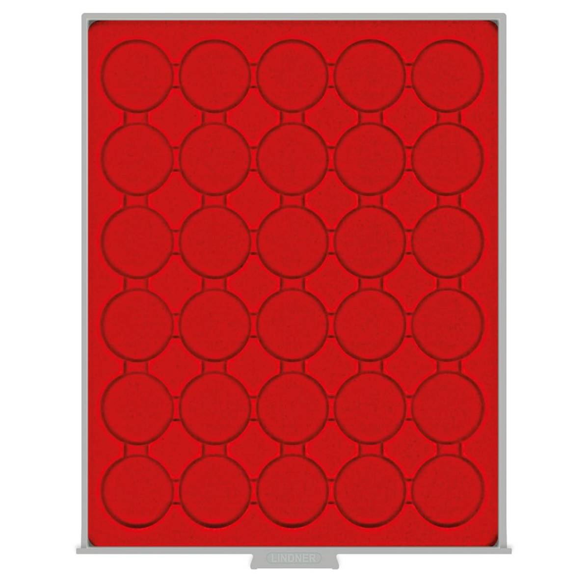 Box rouge 30 cases pour monnaies 33mm sous capsules LINDNER 2226