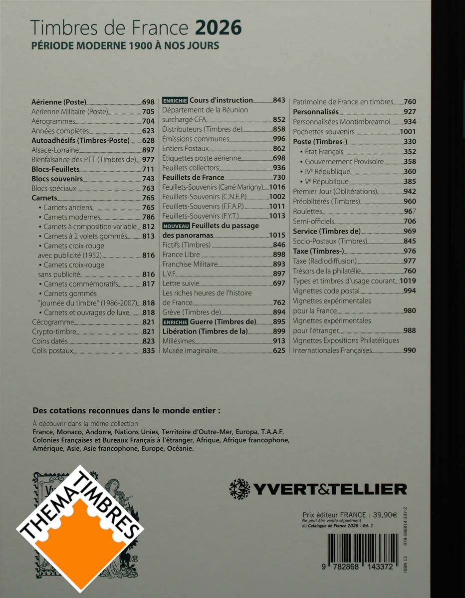 Catalogue de cotation des Timbres de France 2026 Yvert et Tellier 138992