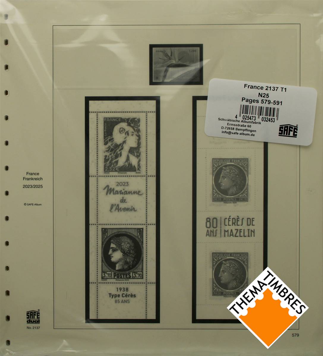 Feuilles pour les timbres de France du 1er semestre 2025 SAFE DUAL 2137-251